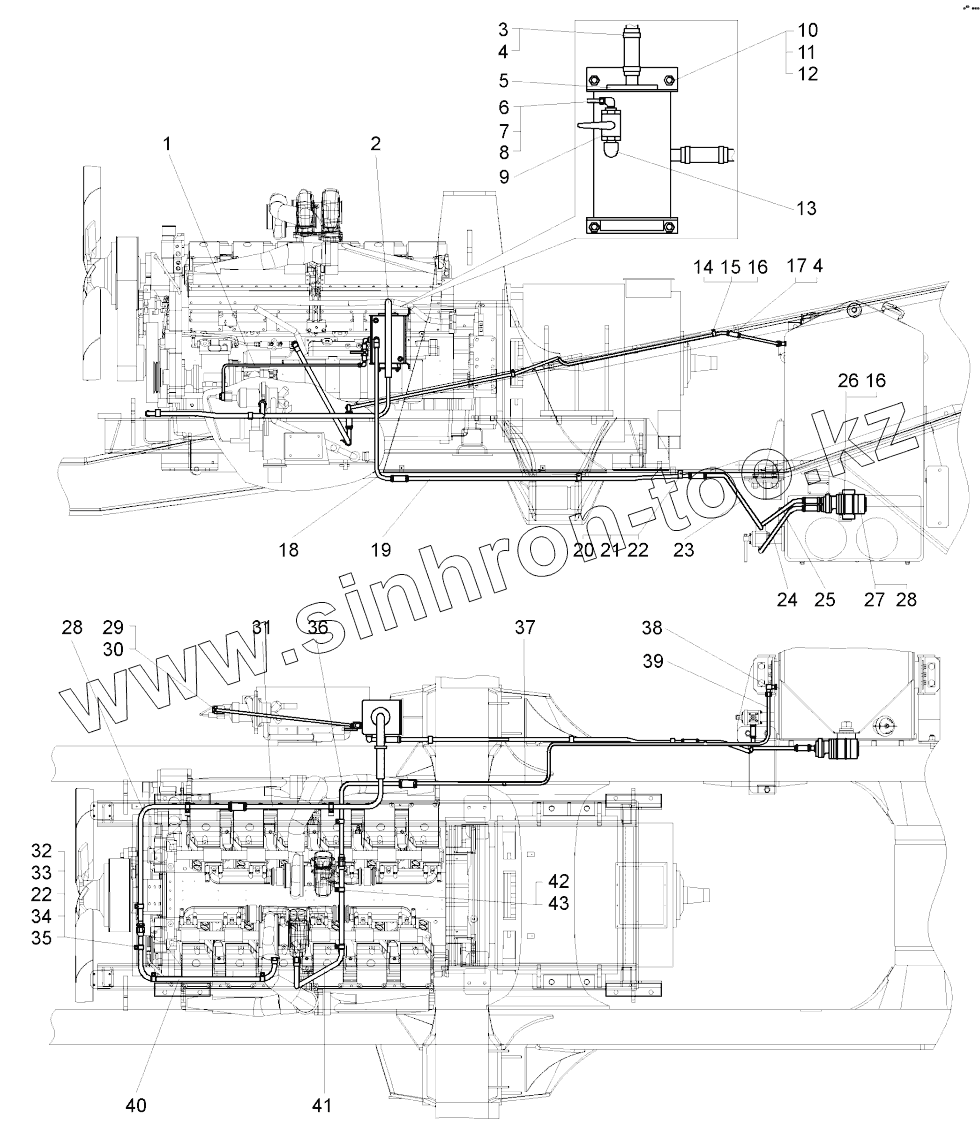 Каталог запасных частей к технике: БелАЗ 75581, 75583. Топливные трубопроводы (75583-1100006);Fuel pipelines