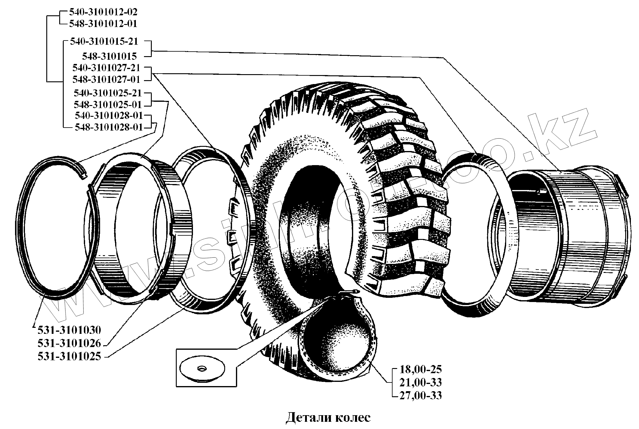 Каталог запасных частей к технике: БелАЗ-540А. Детали колес