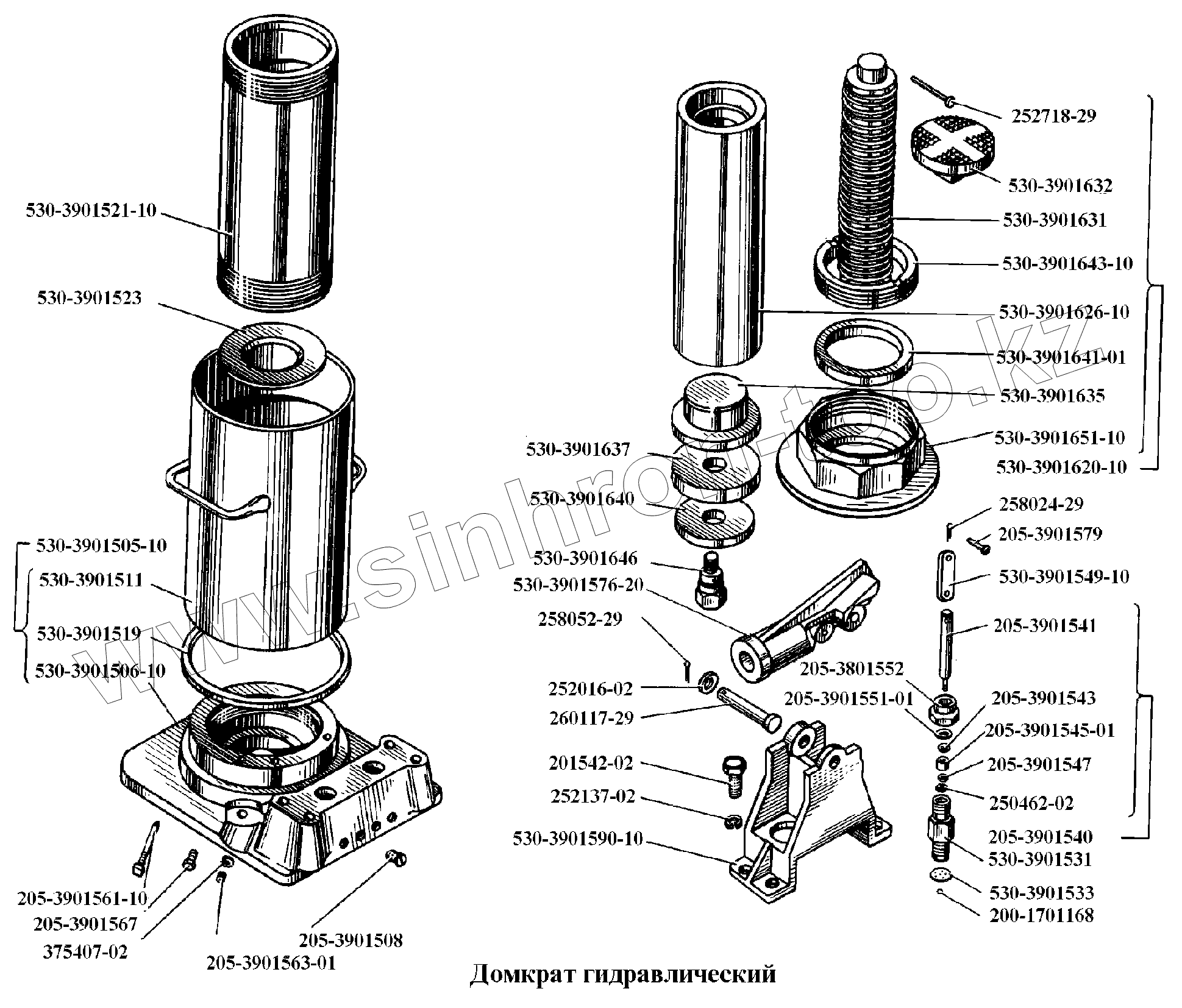 Каталог запасных частей к технике: БелАЗ-540А. Домкрат гидравлический