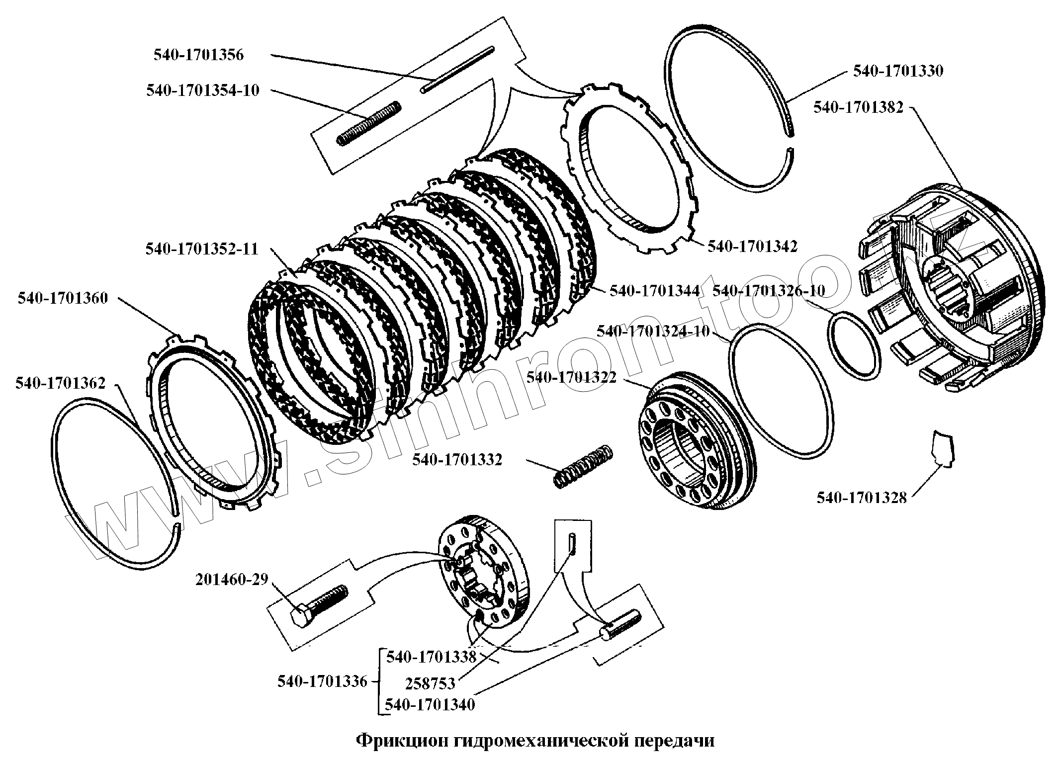 Каталог запасных частей к технике: БелАЗ-540А. Фрикцион гидромеханической передачи