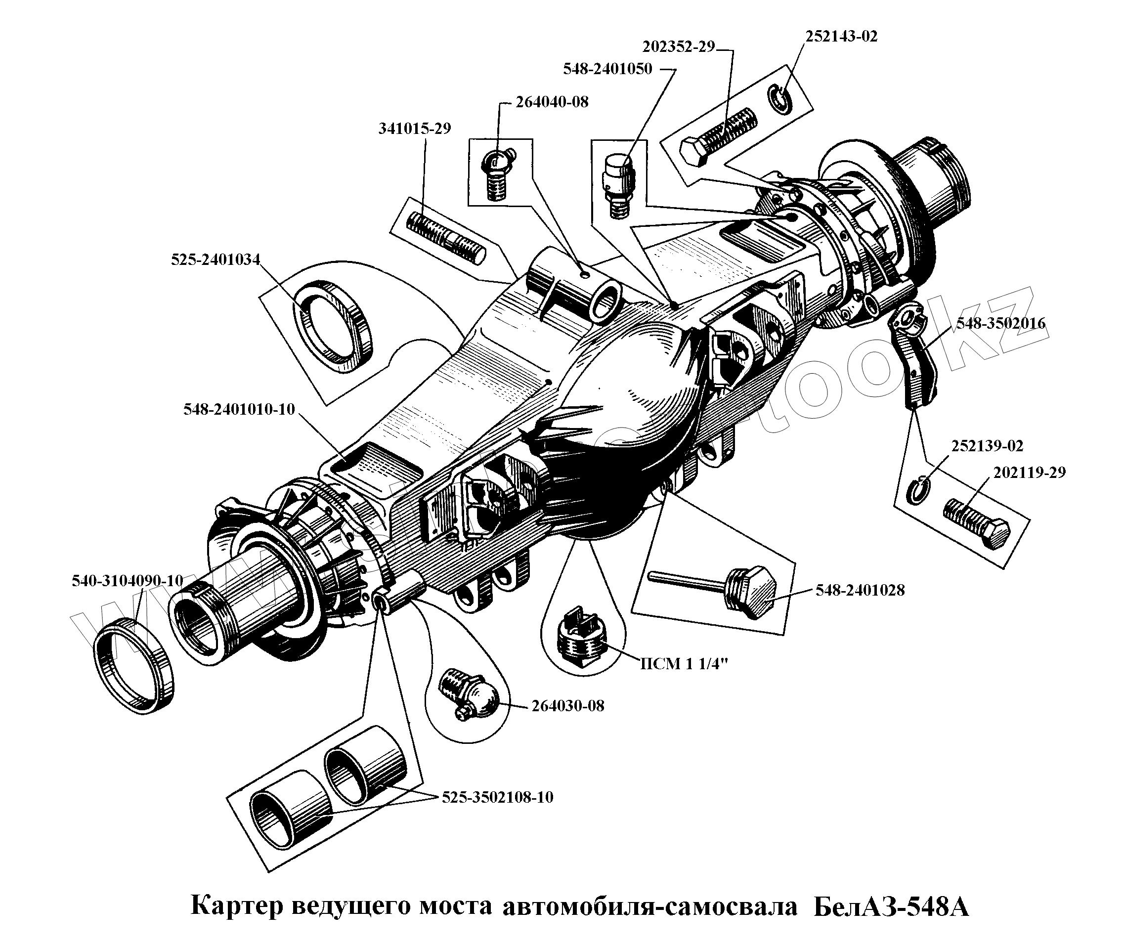 Каталог запасных частей к технике: БелАЗ-540А. Картер ведущего моста автомобиля самосвала БелАЗ-548А