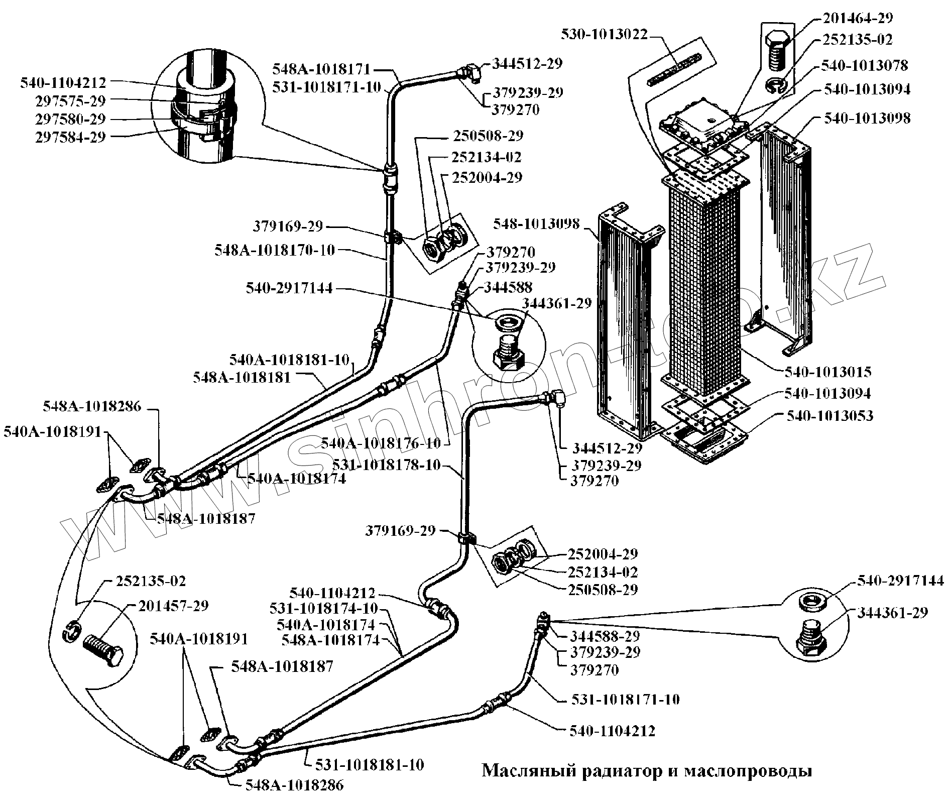 Каталог запасных частей к технике: БелАЗ-540А. Масляный радиатор и маслопроводы