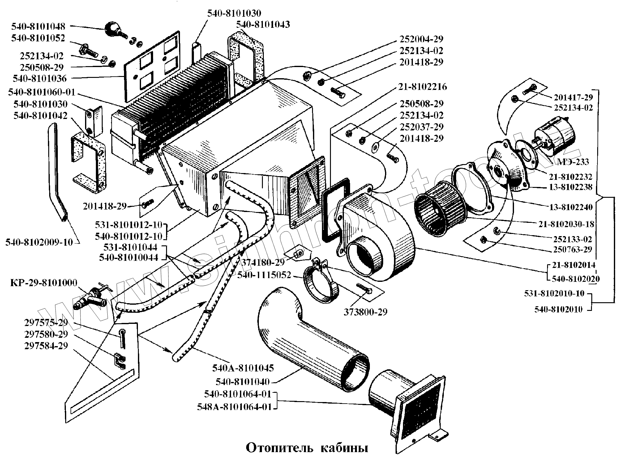 Каталог запасных частей к технике: БелАЗ-540А. Отопитель кабины