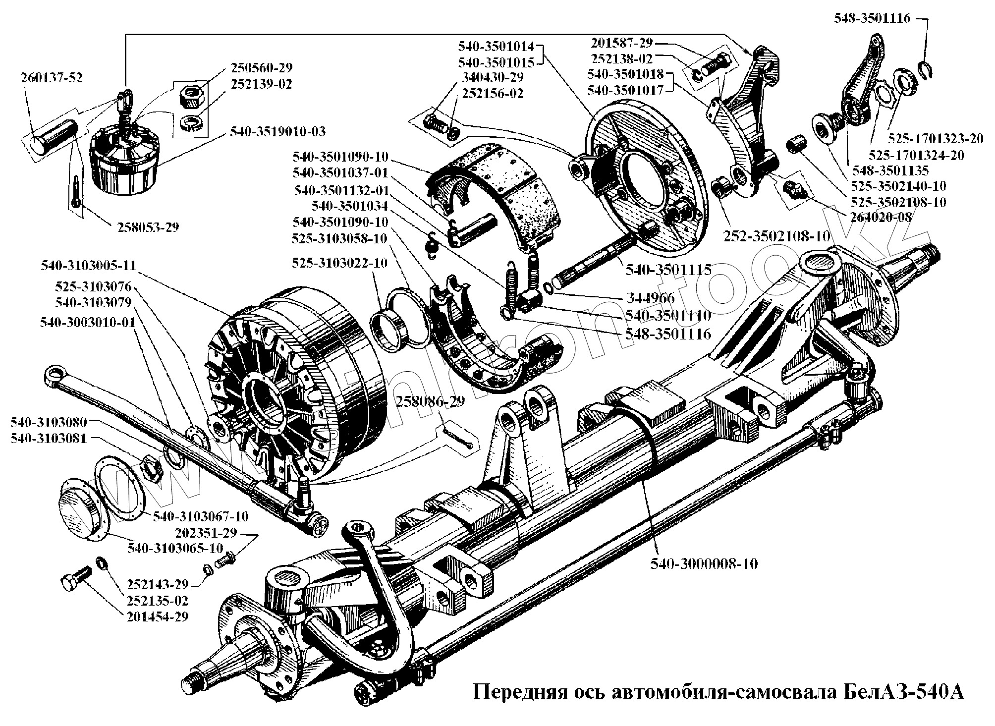 Каталог запасных частей к технике: БелАЗ-540А. Передняя ось автомобиля-самосвала БелАЗ-540А