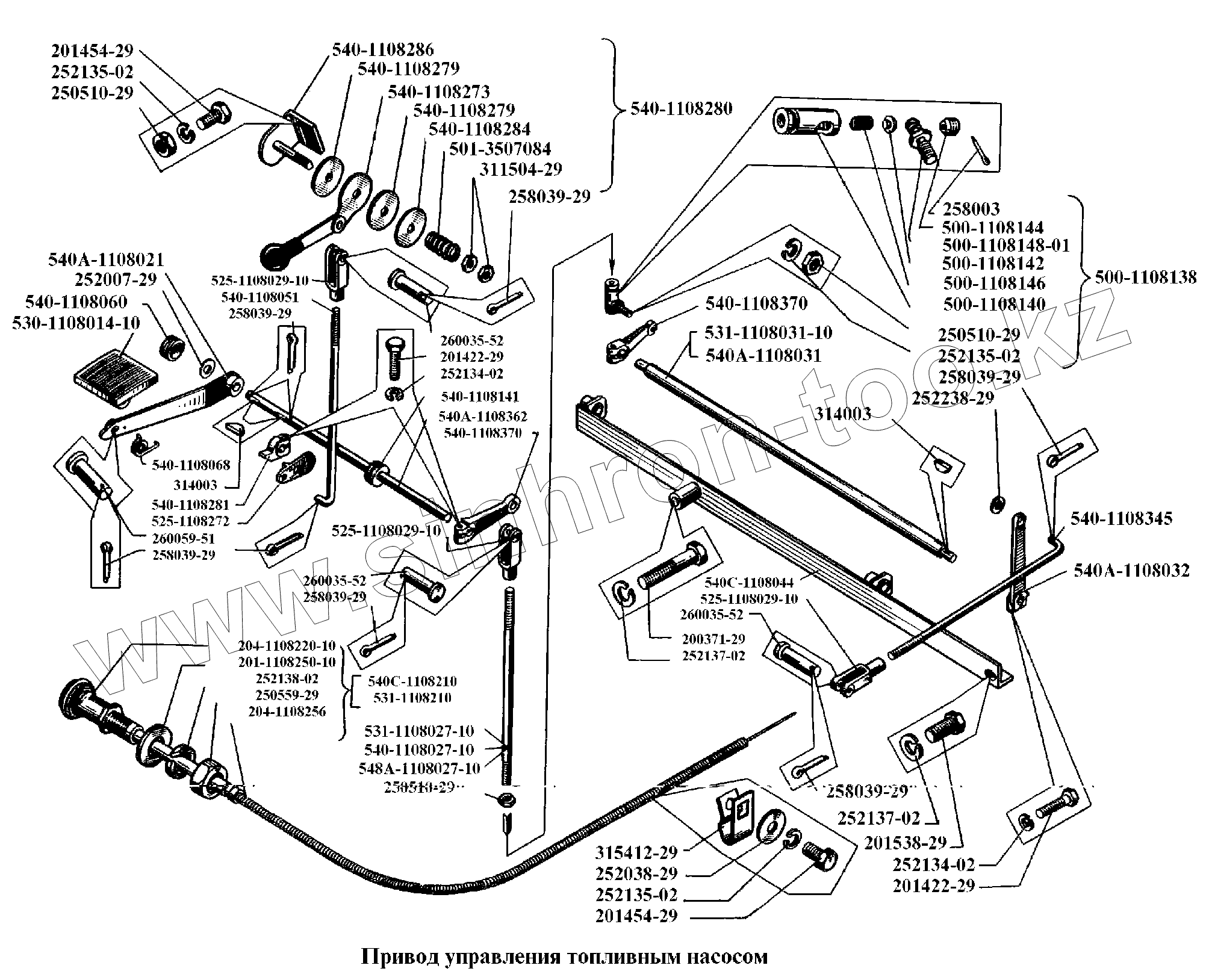 Каталог запасных частей к технике: БелАЗ-540А. Привод управления топливным насосом