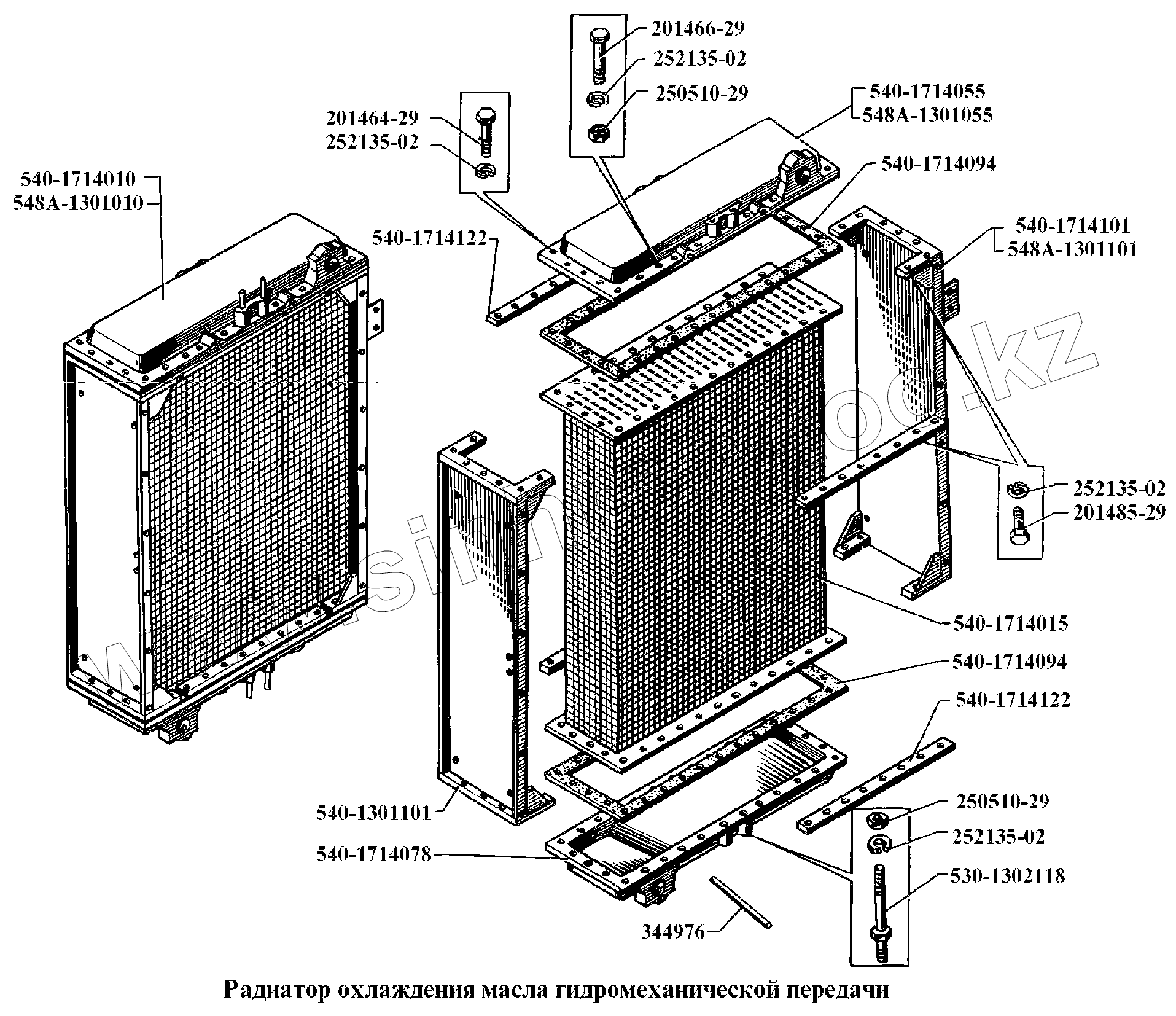 Каталог запасных частей к технике: БелАЗ-540А. Радиатор охлаждения масла гидромеханической передачи