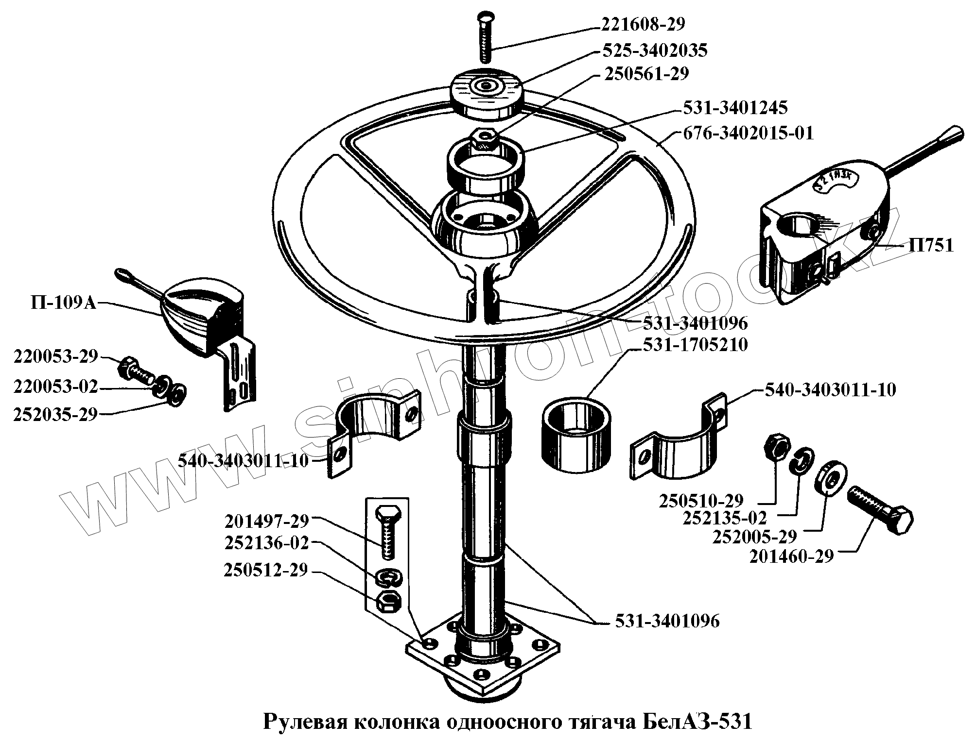Каталог запасных частей к технике: БелАЗ-540А. Рулевая колонка одноосного тягача БелАЗ-531