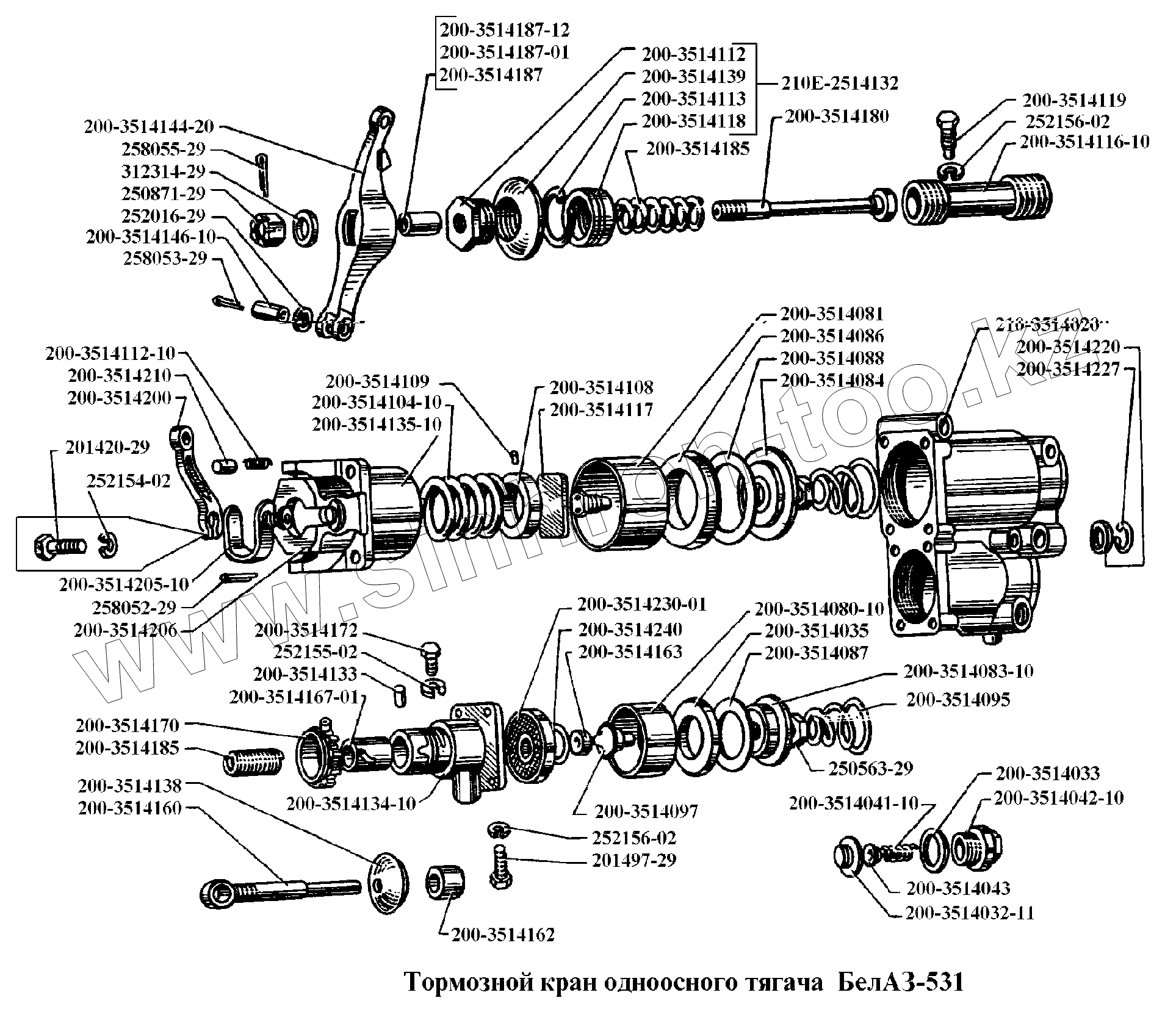 Каталог запасных частей к технике: БелАЗ-540А. Тормозной кран одноосного тягача БелАЗ-531