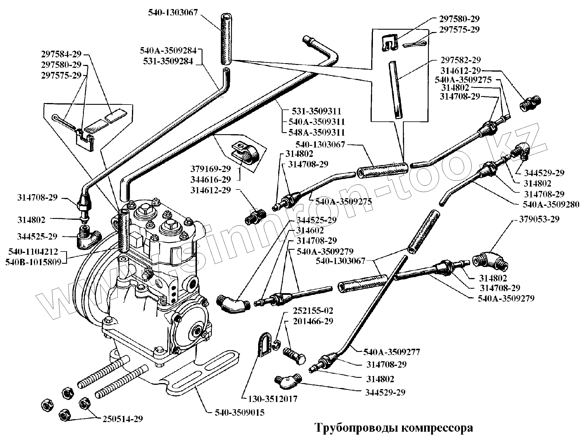 Каталог запасных частей к технике: БелАЗ-540А. Трубопроводы компрессора
