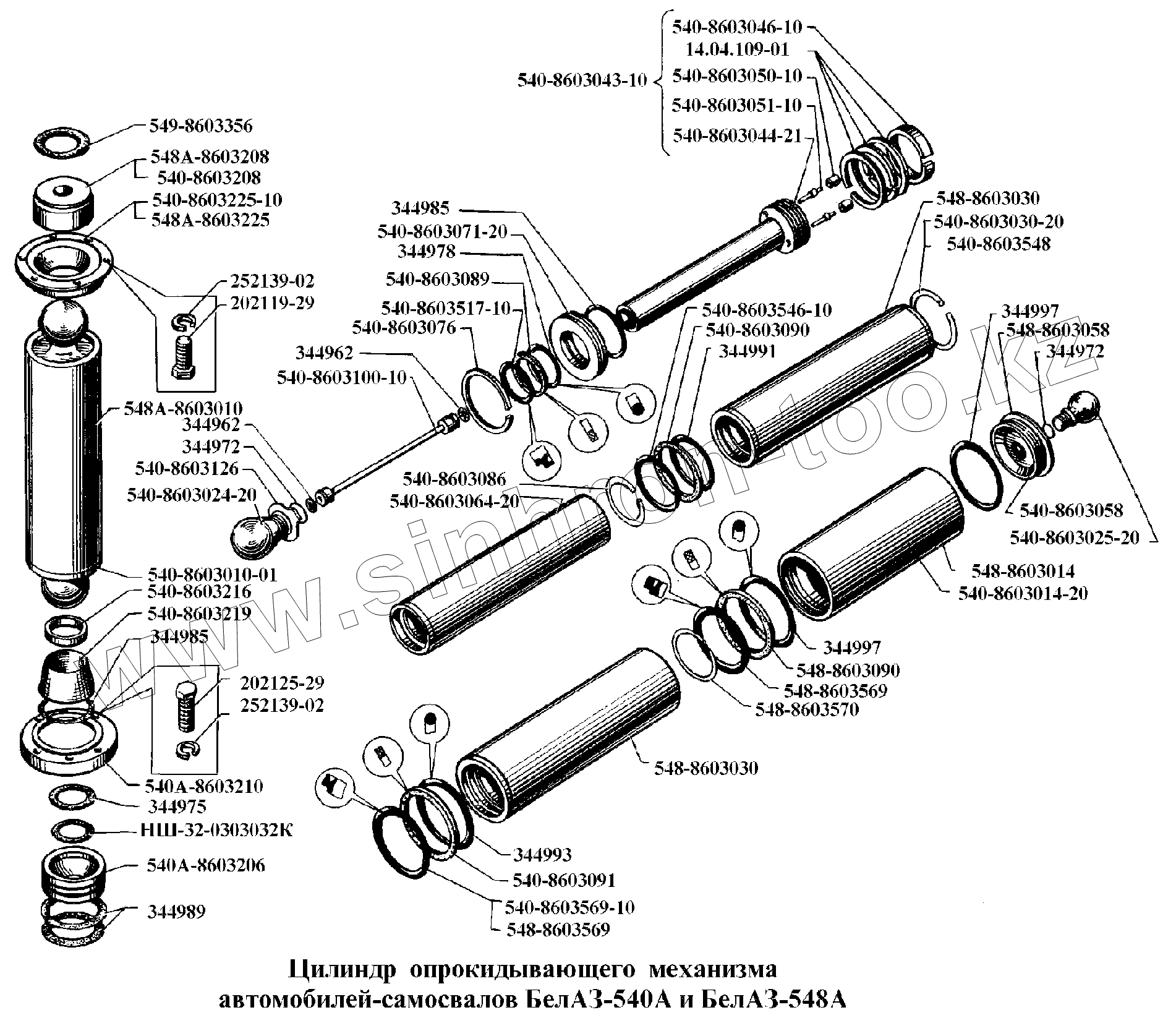 Каталог запасных частей к технике: БелАЗ-540А. Цилиндр опрокидывающего механизма