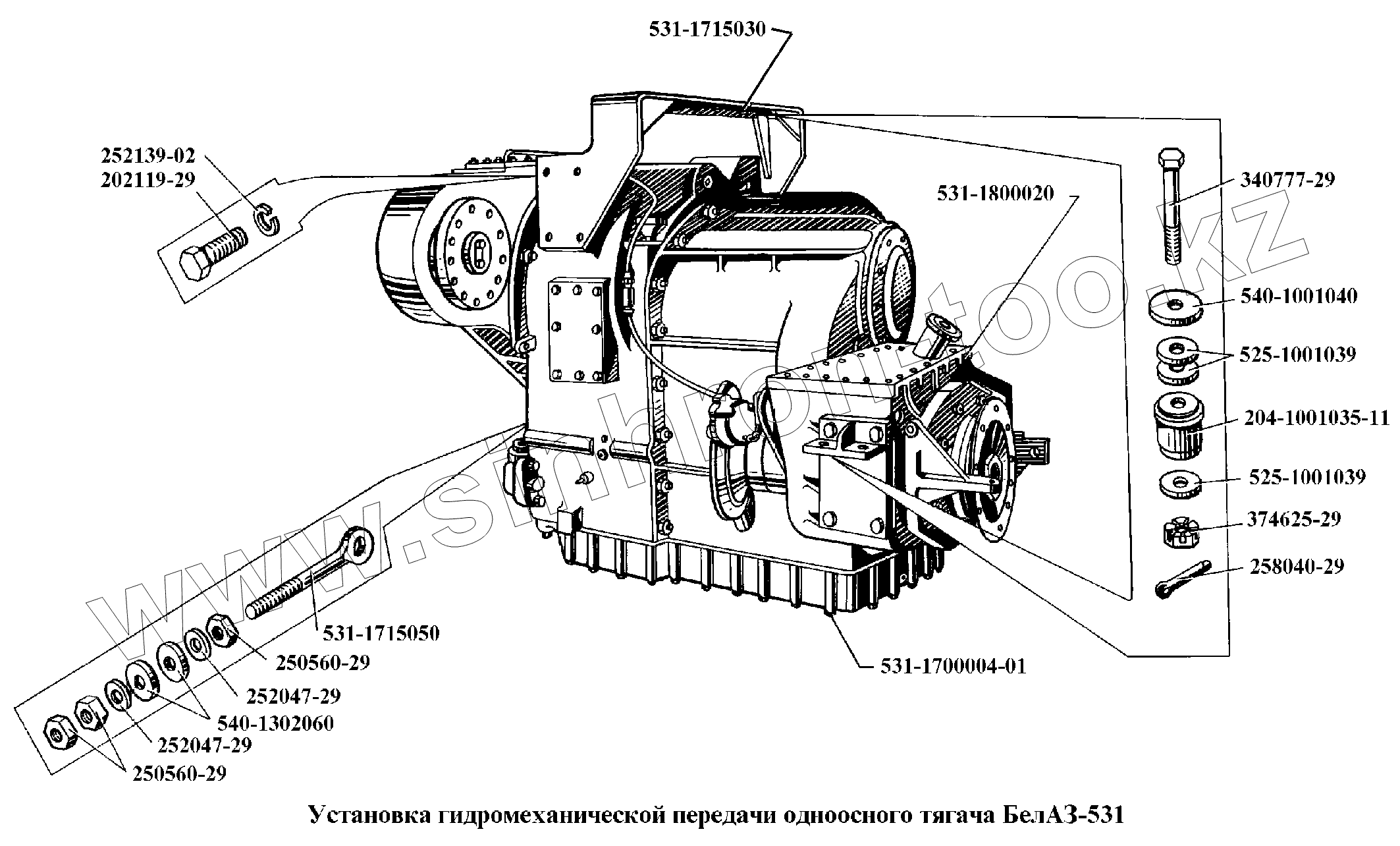 Каталог запасных частей к технике: БелАЗ-540А. Установка гидромеханической передачи одноосного тягача БелАЗ-531