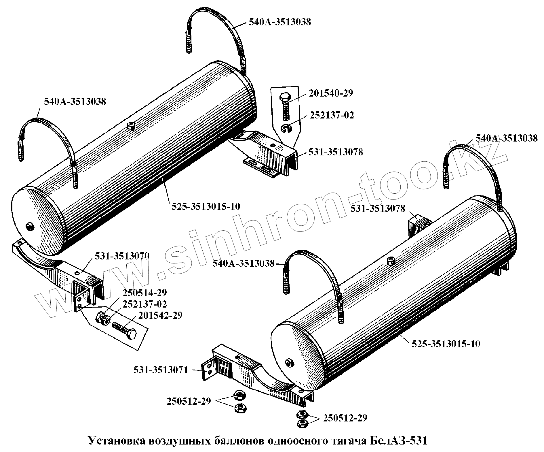 Каталог запасных частей к технике: БелАЗ-540А. Установка воздушных баллонов одноосного тягача БелАЗ-531