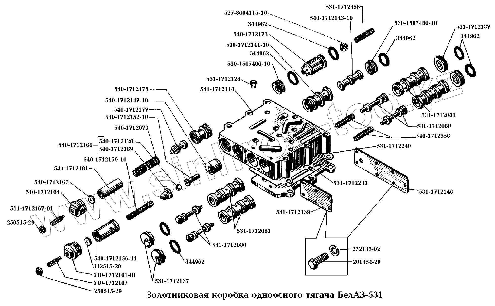 Каталог запасных частей к технике: БелАЗ-540А. Золотниковая коробка одноосного тягача БелАЗ-531