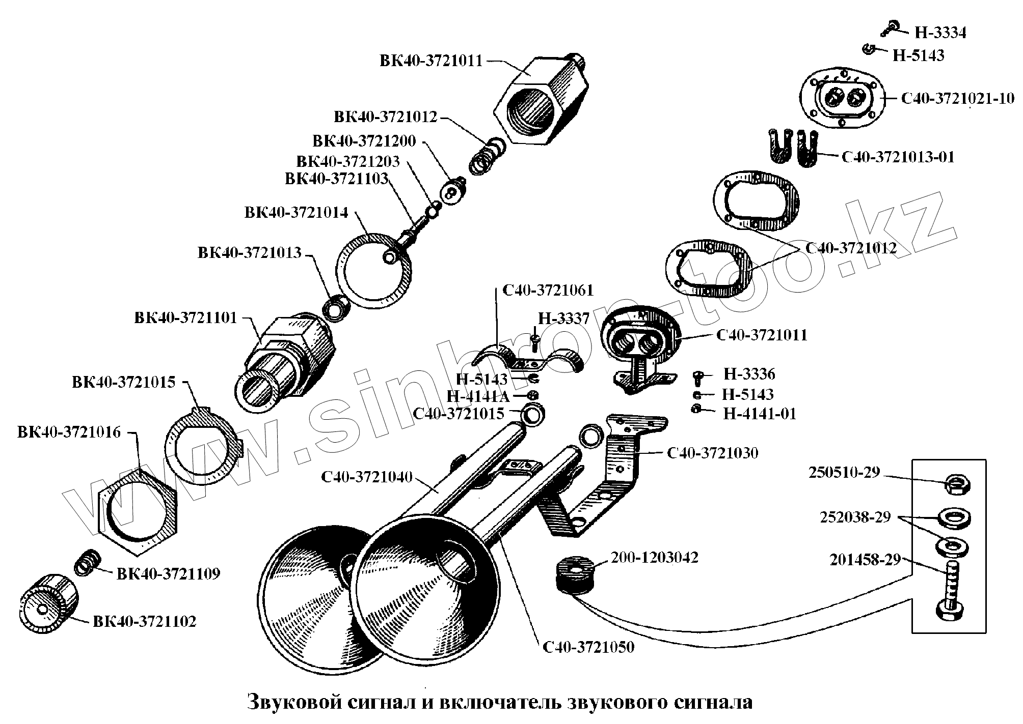 Каталог запасных частей к технике: БелАЗ-540А. Звуковой сигнал и включатель звукового сигнала
