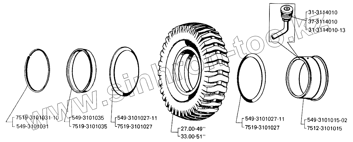 Каталог запасных частей к технике: БелАЗ-7512. Детали колес