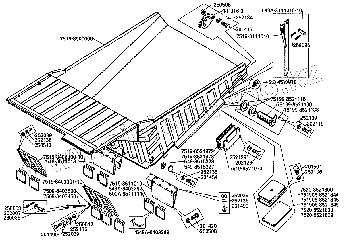 Каталог запасных частей к технике: БелАЗ-7512. Платформа БелАЗ-7512,75123