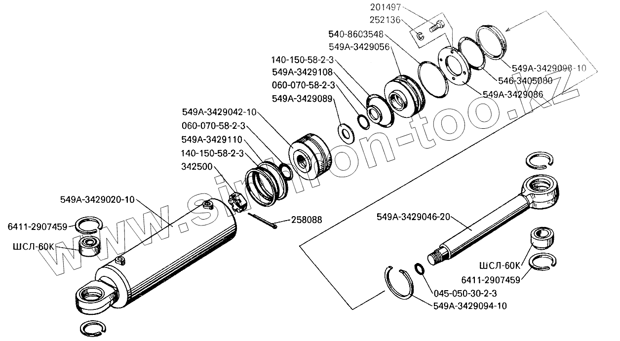 Каталог запасных частей к технике: БелАЗ-7512. Цилиндр поворота БелАЗ-7549