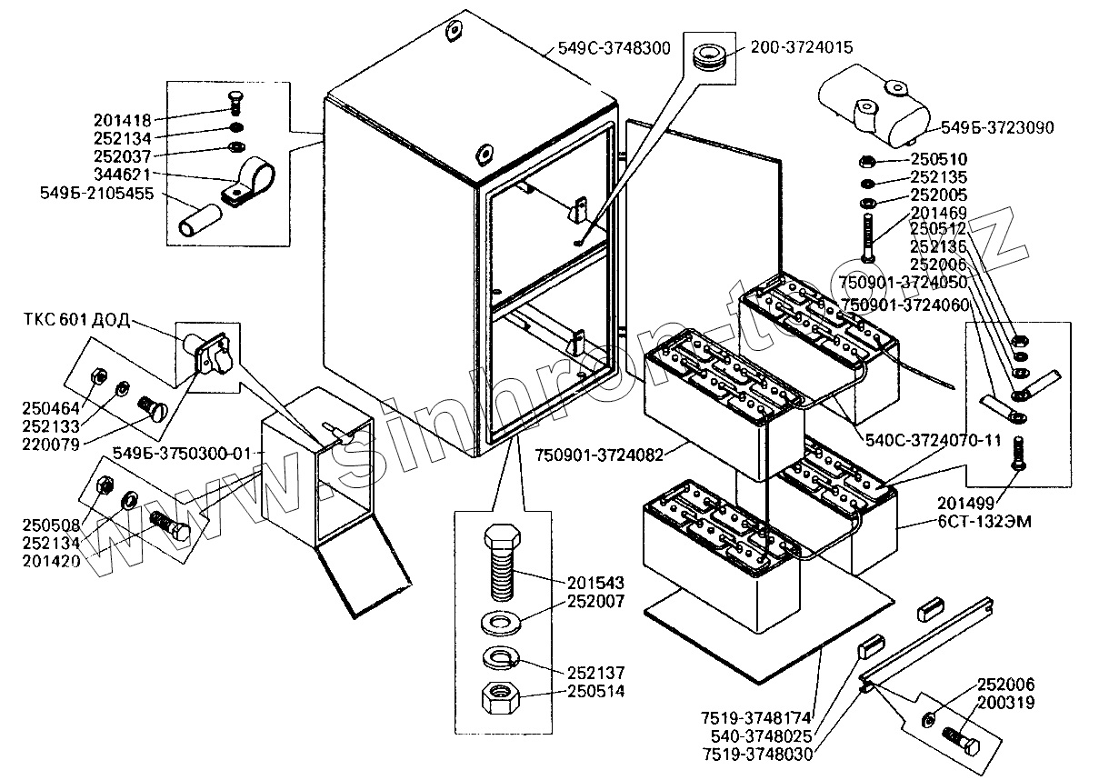 Каталог запасных частей к технике: БелАЗ-7512. Установка аккумуляторных батарей на Белаз-7549