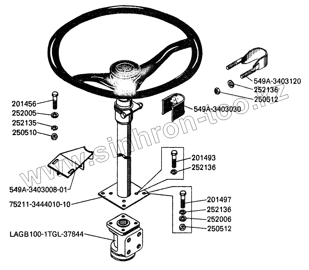Каталог запасных частей к технике: БелАЗ-7512. Установка колонки рулевого управления