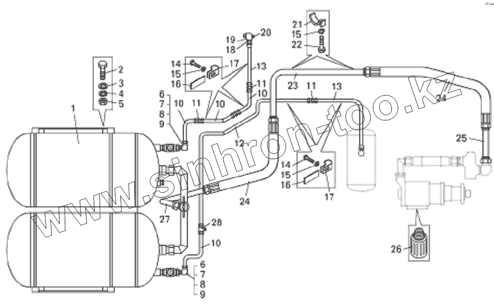 Каталог запасных частей к технике: БелАЗ-75131. Установка системы пневмостартерного пуска двигателя