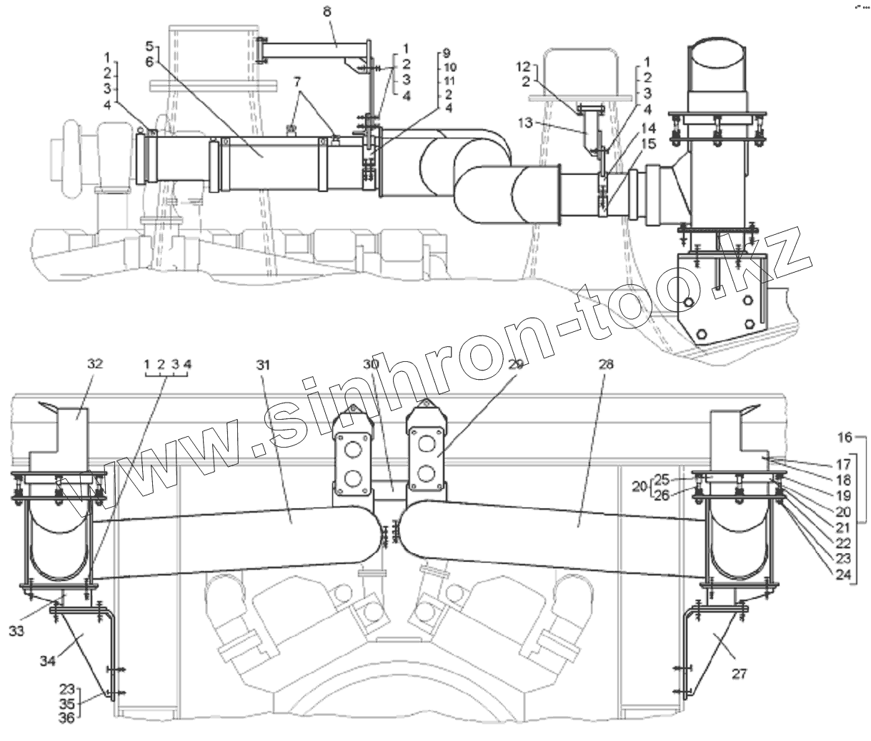 Каталог запасных частей к технике: БелАЗ-75131. Установка системы выпуска отработавших газов