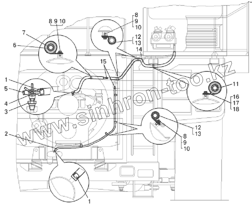 Каталог запасных частей к технике: БелАЗ-75131. Установка трубопроводов отопителя кабины