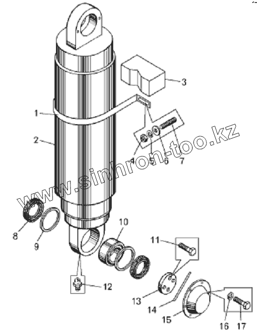 Каталог запасных частей к технике: БелАЗ-75131. Установка цилиндров опрокидывающего механизма