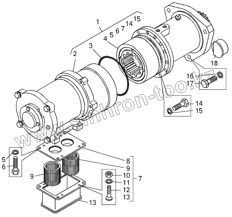 Каталог запасных частей к технике: БелАЗ-75131. Пневмостартер и его установка (75131-1026002)