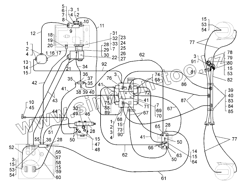 Каталог запасных частей к технике: БелАЗ-75131. Трубопроводы опрокидывающего механизма (75131-8600005-40)
