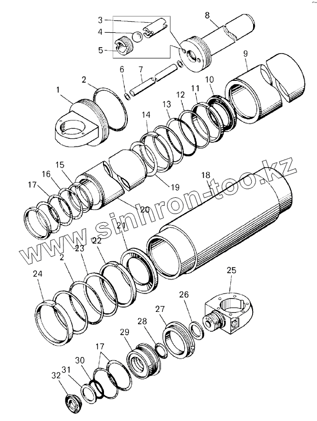 Каталог запасных частей к технике: БелАЗ-75131. Цилиндр опрокидывающего механизма (7513-8603010)