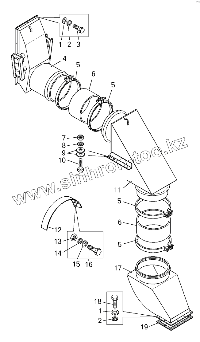 Каталог запасных частей к технике: БелАЗ-75131. Установка всасывающих воздухопроводов (75131-2100044-30)