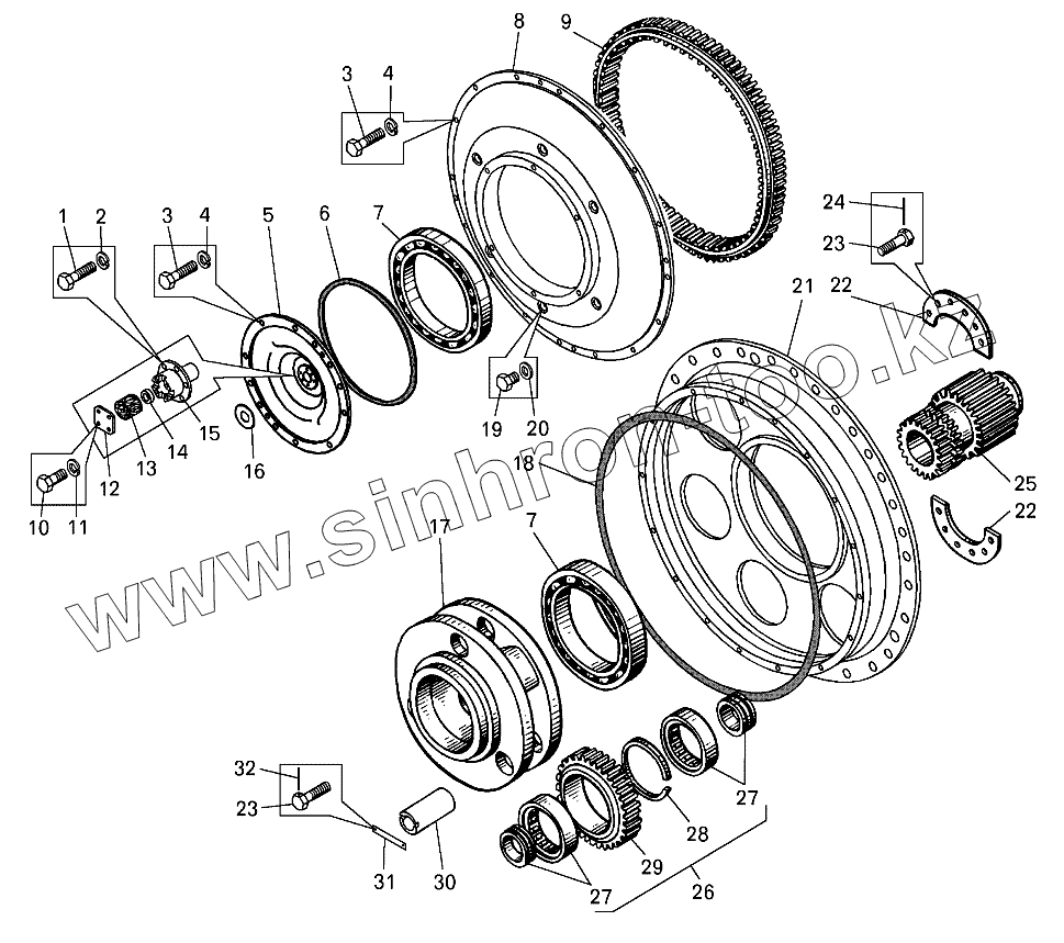 Каталог запасных частей к технике: БелАЗ-7513. Ряд первый редуктора электромотор-колеса