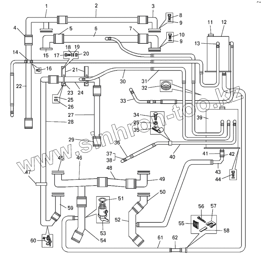 Каталог запасных частей к технике: БелАЗ-7513. Трубопроводы системы охлаждения двигателя самосвала БелАЗ-75132