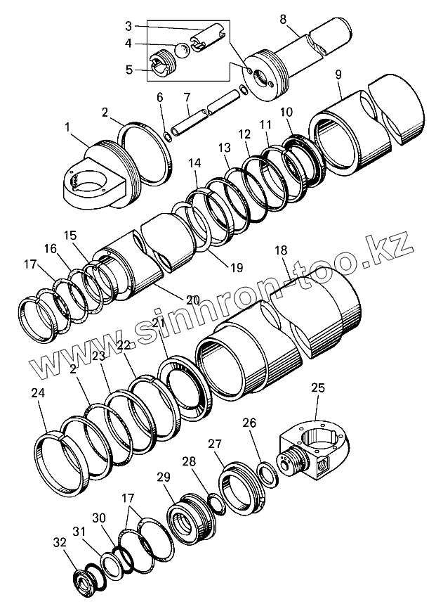 Каталог запасных частей к технике: БелАЗ-7513. Цилиндр опрокидывающего механизма