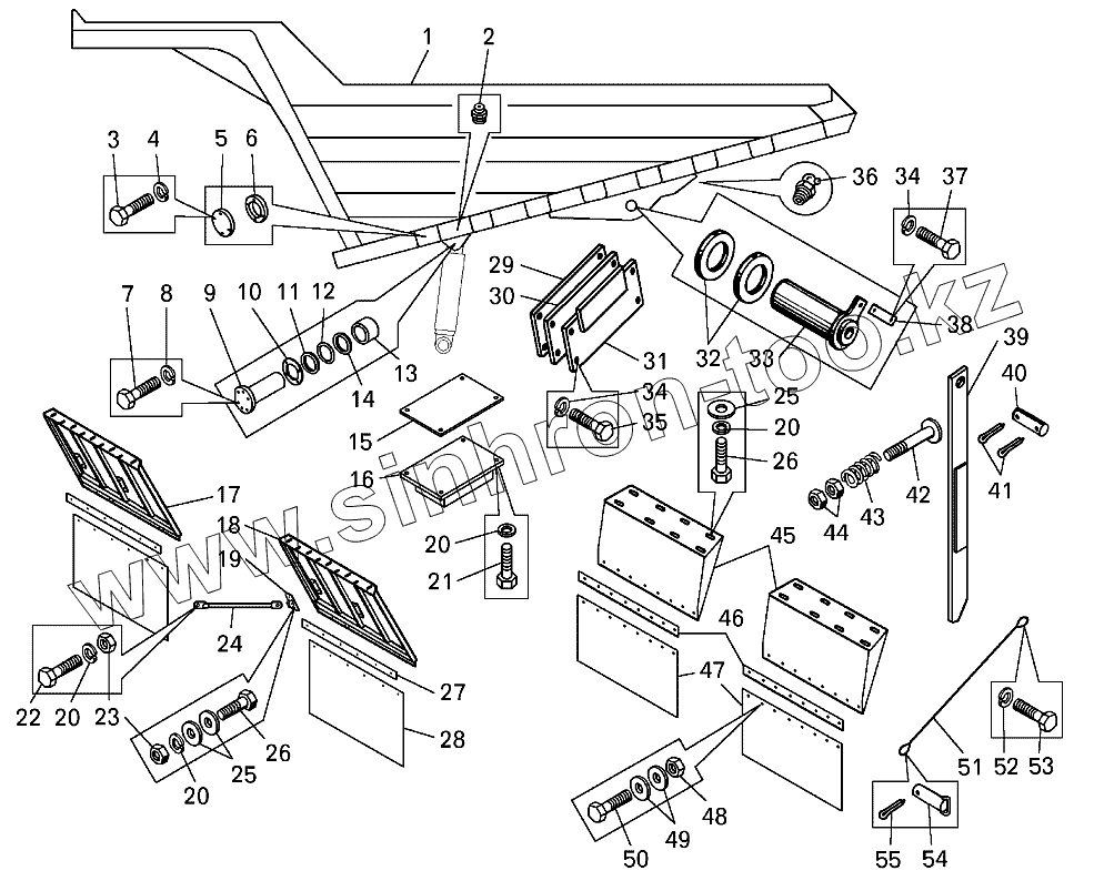 Каталог запасных частей к технике: БелАЗ-7513. Установка платформы, камневыталкивателей и брызговиков