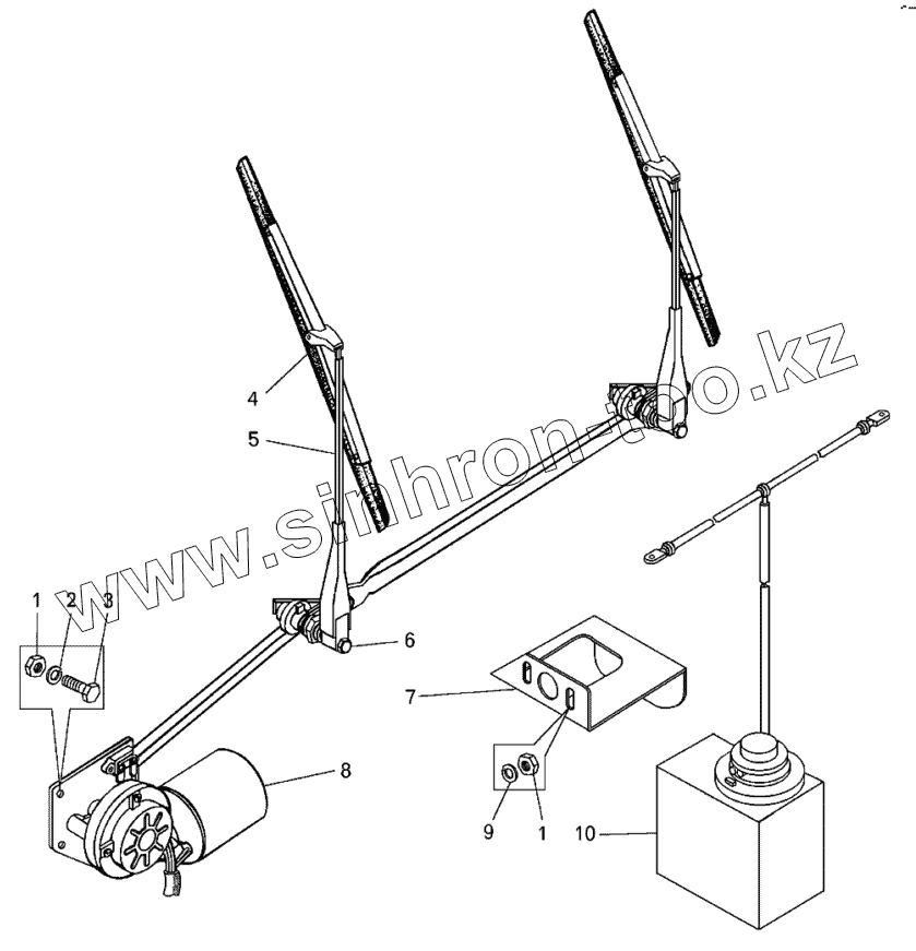 Каталог запасных частей к технике: БелАЗ-7513. Установка стеклоочистителей и стеклоомывателя