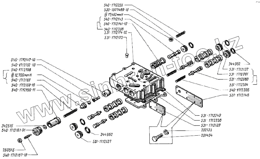 Каталог запасных частей к технике: БелАЗ-7522. Золотниковая коробка трехступенчатой гидромеханической передачи