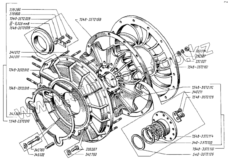 Каталог запасных частей к технике: БелАЗ-75231. Гидравлический тормоз пятиступенчатой гидромеханической передачи