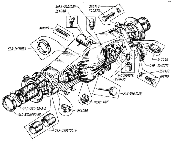 Каталог запасных частей к технике: БелАЗ-75231. Картер ведущего моста