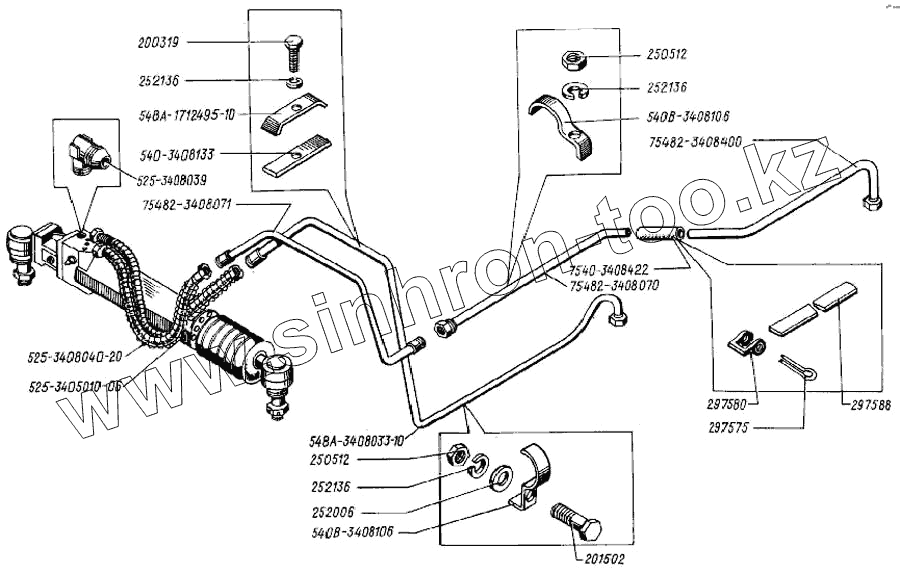 Каталог запасных частей к технике: БелАЗ-7523. Трубопроводы рулевого управления