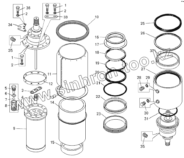 Каталог запасных частей к технике: БелАЗ-75306. Цилиндр подвески