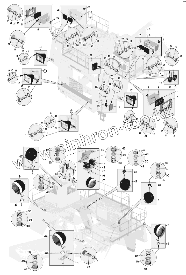 Каталог запасных частей к технике: БелАЗ-75306. Установка фар и подфарников. Вид 1, 2