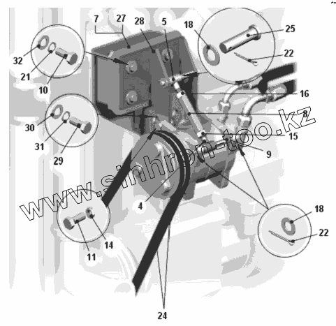 Каталог запасных частей к технике: БелАЗ-75306. Установка кронштейнов компрессора кондиционера