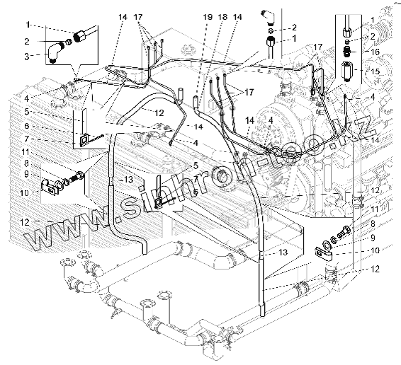 Каталог запасных частей к технике: БелАЗ-75306. Установка пароотводных трубок системы охлаждения двигателя