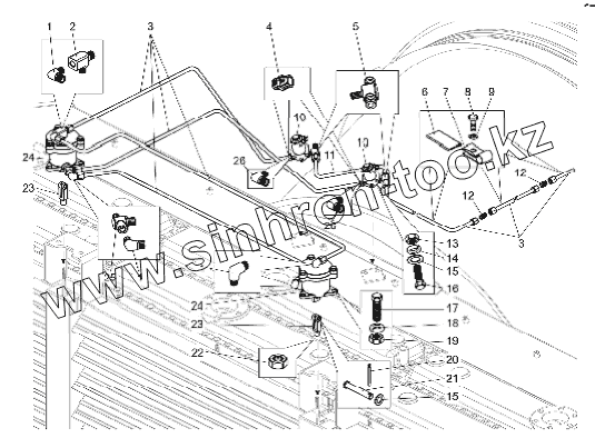 Каталог запасных частей к технике: БелАЗ-75306. Установка пневмопривода управления жалюзи радиаторов