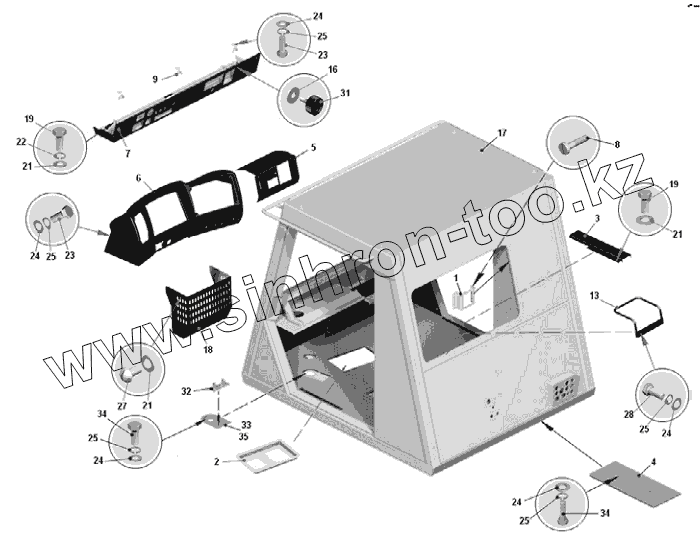 Каталог запасных частей к технике: БелАЗ-75306. Установка приборных панелей и кронштейнов педали