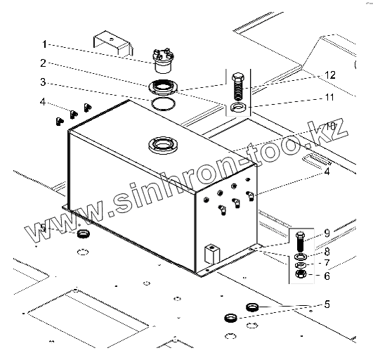 Каталог запасных частей к технике: БелАЗ-75306. Установка расширительного бачка системы охлаждения двигателя