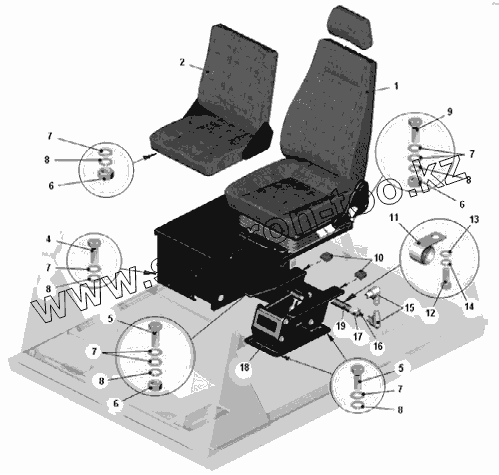 Каталог запасных частей к технике: БелАЗ-75306. Установка сидений в кабине