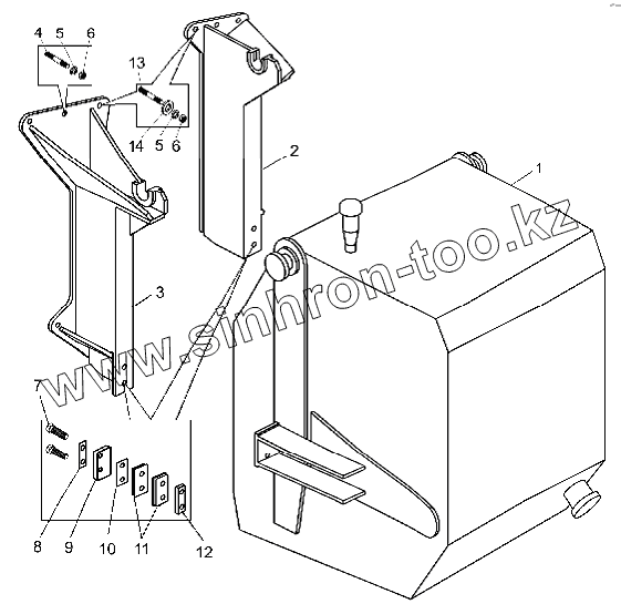 Каталог запасных частей к технике: БелАЗ-75306. Установка топливного бака