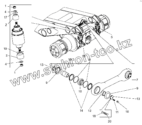 Каталог запасных частей к технике: БелАЗ-75306. Установка цилиндров и поперечной штанги задней подвески